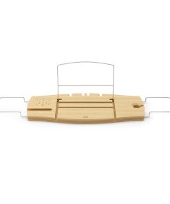 Get the ultimate bath-time experience with the Aquala Bathtub Tray – luxury made simple. Keep everything you need for a calming soak close at hand with a bath tray that fits books, tablets, phones, glasses (even stemware!) of all shapes and sizes. We’ve also added a phone holder to keep your device dry and within reach, a double hook for your loofah, and extra support to keep your reading material upright. And let’s not forget the new wine glass holder – Cheers to ultimate relaxation! With the Aquala Bath Caddy, & Tray your bath-time essentials will stay organized for your most tranquil moments. Measures 28.13 x 8.63 x 1.25 inches (71 x 22 x 3 cm). Sourced from renewable wood sources and made with an eco-friendlier finish. It produces 85% less water and solid waste than traditional electroplating finishes. Wood is a unique natural material with variations in tone, texture, and grain. The product may vary from our imagery. ⓘ For Best Care: wipe with a clean damp cloth