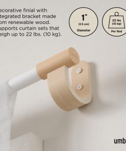 Bellwood utilizes a modern design with an industrial and eye-catching twist with a metal rod, wood finish finials, and matching wall brackets. Made of steel, this mixed material curtain rod is durable while remaining attractive in design. It includes all necessary mounting hardware for easy installation. Bellwood curtain 1″ (2.5cm) diameter rod telescopes from 42-120″ (107-305cm) and fits windows 34-112″ (86-284 cm). It supports curtain sets weighing up to 22lbs. (10kg). Wood is a unique natural material with tone, texture, and grain variations. The product may vary from our imagery. ⓘ For Best Care: wipe with a clean damp cloth. To support the full 22 lb (10 kg) weight capacity, installation of the included center support bracket is required.