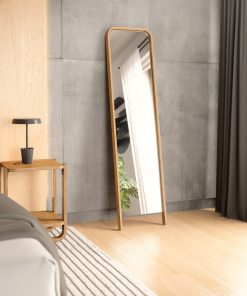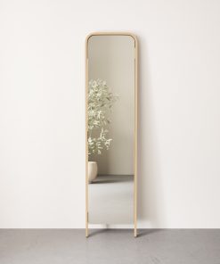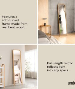 This eye-catching piece is sure to become a statement in any room. Bellwood Leaning Mirror features a soft curved wood frame made from renewable wood, offering both style and sustainability. The Bellwood Leaning Mirror is 62 x 15.5 2″ (157 x 39 x 5 cm) in size – big enough to make an impact, yet small enough to fit in almost any room. Creating reflection and depth, this mirror will instantly bring extra light into almost any space. Includes anti-tip hardware. Part of Umbra’s Bellwood Collection. Wood is a unique natural material with variations in tone, texture, and grain. The product may vary from our imagery. Care: Wipe with a clean damp cloth.