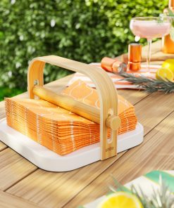 Elevate your table setting with the Bellwood Napkin Holder, thoughtfully crafted from a recycled plastic weighted base and warm wood accents. This stylish combination adds a welcoming touch to any dining occasion, while the holder’s unique design keeps napkins neatly in place. An integrated rubber gripper ensures stability, making it easy for guests to take one napkin at a time without disrupting the stack. Its integrated wooden handle makes it easy to move from your countertops, dining tables or patios for easy access while working or entertaining. Perfect for adding both function and charm to your dining experience. Pair with the coordinating pantry items from our Bellwood Collection. Holds 20cm napkins. Made with recycled plastic & sustainable wood.