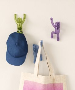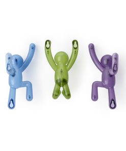 Introducing Umbra’s new BUDDY PIN-POINT wall hooks. This set of 3 wall hooks features Umbra’s popular Buddy character “climbing the walls” in various positions. Unlike regular plugs and screws, Umbra’s PIN-POINT hardware solution installs without drilling, fewer tools, and no wall damage (we’ve also included the original hardware). Durable, versatile, and repair-friendly, PIN-POINT makes it easy to get a secure hold without harming your wall. When not in use, they serve as fun, unique wall decor that is sure to be a conversation-starter. Buddy Wall Hooks are the perfect addition to your entryway and a playful, space-saving alternative to a traditional coat rack. Made with recycled plastics.