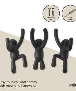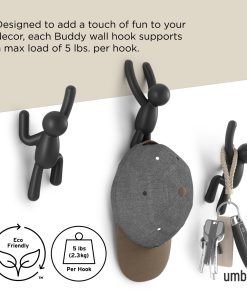 This set of 3 wall hooks features Umbra’s popular Buddy character “climbing the walls” in various positions. When not in use, they serve as fun, unique wall decor that is sure to be a conversation-starter. Buddy Wall Hooks are the perfect addition to your entryway and a playful, space-saving alternative to a traditional coat rack. Made with recycled plastics.