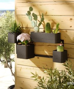 Introducing the Umbra Cubiko Wall Planter – the perfect way to add a powerful statement to any wall, both indoors or out. Inspired by the CUBIKO family aesthetic, this planter is made of durable, lightweight materials, making it perfect for a variety of plants, no matter their size. With a customizable configuration, you can decide how you want to arrange your plants, giving you the freedom to spruce up any space in your own unique style. Plus, with the included drainage trays, it’s easy to ensure your plants stay hydrated and healthy. Cubiko can be oriented vertically or horizontally to best fit your space. Includes 4 pots – two 5 x 5 x 4” (fits 4.75” pots), one 6.25 x 6.25 x 5.5” (fits 6” pot), one x 14 x 4.25 x 6.5” (fits 3 x 4” pots side by side). Includes all necessary hardware for easy installation. Made from rust-resistant recycled plastic with a recycled wood fibre.