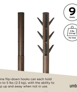 This wooden coat rack stands tall and sleek with nine flip-down hooks, offering ample storage with the ability to tuck away when not in use. Made of wood, Flapper has a tree-like aesthetic, while being entirely modern. Available in a variety of modern finishes, Flapper is sleek in design while keeping ample utility. Measures 15.63 x 15.63 x 66 inches (40 x 40 x 168 cm). Sourced from renewable wood sources. Wood is a unique natural material with variations in tone, texture, and grain. The product may vary from our imagery. ⓘ For Best Care: wipe with a clean damp cloth