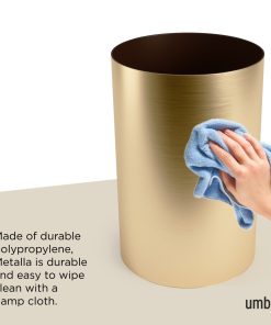 Metalla trash can features the sleek, eye-catching qualities of a brushed metal surface, with the durability of plastic. This trash can looks great in kitchens with stainless steel appliances and doubles as a stylish and modern planter or recycling bin. It measures 10″ (25 cm) in diameter and 14.4″ (37 cm) in height and has a generous 4.5 Gallon (17L) capacity. Compact and sleek in size, Metalla makes a great trash can under a desk or in a bathroom.