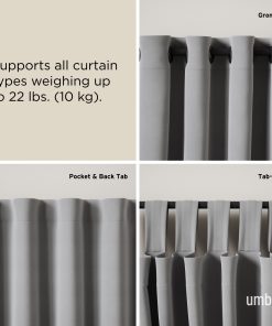 Made of steel, this curtain rod is durable while remaining attractive in design. Includes all necessary mounting hardware for an easy installation. Ringlet curtain 1″ (2.5cm) diameter rod is adjustable to fit a wide range of windows, from 42-120″ (107-305cm), and supports curtain sets weighing up to 22lbs. (10kg). To support the full 22 lb (10 kg) weight capacity, installation of the included center support bracket is required.