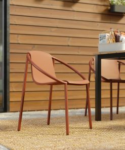With an organic shape and rust-proof bent metal frame, this eye-catching chair features molded mixed wood fiber composite with an eco-friendly durable powder coated finish. Ringo can be used indoors or outdoors and has an ergonomic injection-molded seat, making it comfortable to sit and lounge in. Easy to stack, use multiple Ringo’s to create the ultimate patio set up. Measures 21.5 x 25.2 x 29 inches (55 x 64 x 74 cm). Recommended to stack up to six chairs. Max weight capacity of 220lbs. (100kg) per chair.