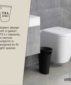 Umbra Skinny Can is a slim and stylish trash can, with a narrow footprint, designed to fit into small spaces and hold up to 2 gallons. Skinny is sleek and narrow, with a modern design, and comes in a wide array of finishes to match any existing decor. With a polypropylene construction, Skinny is durable and easy to maintain. Its integrated, built-in handle allows for the simple transport and disposal of contents. Skinny features rounded corners to prevent liquids from getting trapped into tight corners. Measuring at 13.5 x 6.5 x 13 inches (34 x 17 x 33 cm), Skinny is able to fit into compact, unconventional places and make a contemporary, bold statement.