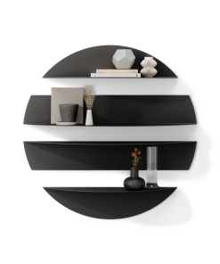 This set of four unique wall shelves are made of bent metal and can be used together to create an eye-catching wall display that doubles as storage. Made up of two large and two smaller shelves, each shelf can be mounted individually or placed together. Each shelf can also be mounted with the shelf surface facing upwards or downwards. Use Solis to display or store books, decorative items, candles, picture frames and more. Small shelf load capacity of 10 lbs (4.5 kg) and large of 15lbs (6.8 kg). Measures 30 x 30 x 7.29″ (76 x 76 x 19 cm). This shelf is made with an eco-friendlier finish. It produces 85% less water and solid waste than traditional electroplating finishes.