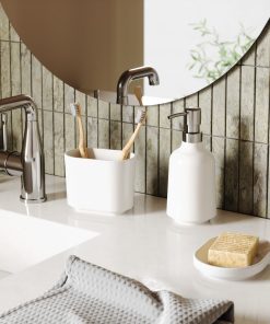 Step Soap Dish by Umbra combines crisp clean lines with a glossy finish, making Step a modern fixture for your bath. It features a bottom detailing that elevates the rest of the piece from the surface it sits on, giving it a raised aesthetic. Step is made of the highly durable material melamine, meaning it is less likely to break in busy washrooms and kitchens. Pair this soap dish with other accessories from the Step Bathroom Collection for a more cohesive look. Step Soap Dish measures 5.88 x 4 x 1″ (15 x 10 x 3 cm).
