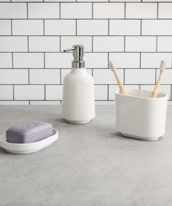 Step is made of the highly durable material melamine, meaning it is less likely to break in busy washrooms and kitchens. This modern and sleek toothbrush holder will hold your toothbrushes upright, ensuring they remain clean and dry after use. It measures 5 x 3 x 4 inches (13 x 8 x 10 cm). Pair this toothbrush holder with other accessories from the Step Bathroom Collection for a more cohesive look.