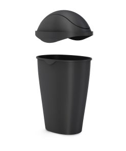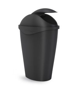 Swinger Trash Can is a large, durable can, constructed of sturdy polypropylene. The can’s non-slip feet keep it grounded and secured in place. In addition to its functionality, Swinger is contemporary, sleek and slim, with curved lines and a clean matte finish. Measuring 18 x 13.25 x 28″ (46 x 34 x 71 cm), Swinger has a unique design, ensuring it consumes little surface area and can easily fit in narrow spaces, but is still capable of holding 13-gallon (45 L) garbage and recycling bags. The can features a molded, swing-top lid, with soft-touch clips, that keep the plastic bag entirely concealed. Made with recycled plastics.