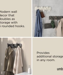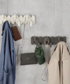 Tempo 6 Hook brings modern style and everyday function together in one sleek wall-mounted design. Its six staggered hooks maximize hanging space while creating a striking, graphic look on your wall. Made from durable, lightweight recycled plastic blended with recycled wood fiber, Tempo adds a subtle natural texture that complements a variety of spaces; from entryways and bedrooms to bathrooms and offices. Each hook holds up to 5 lbs (30 lbs total), making it perfect for coats, bags, towels, and more. Measures 18.6 x 6.22 x 2.54″ (47 x 15.7 x 6.4 cm).