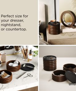 Featuring two tiers that can be stacked or separated, this jewelry box is the perfect addition to help store and organize your accessory collection. The Tesora’s plated metal lid doubles as a tray to store and display easily accessible accessories. Its two-tiered stacking design makes this a versatile storage solution that can be stacked on top of one another to save room or kept separately. Its perfect size makes it easy to place by your bedside table for easy access and to ensure your jewelry does not get lost. Wood is a unique natural material with variations in tone, texture, and grain. The product may vary from our imagery. ⓘ For Best Care: wipe with a clean damp cloth
