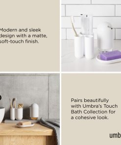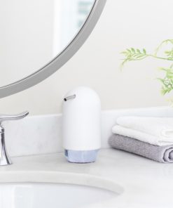 Touch Soap Pump is made of a matte, soft-touch molded material, which is easy to clean, and highly durable. The finish is delicate, smooth to the touch, and pleasing to the eye. Its curved pump is a departure from the typical soap pump, fitting the curve of your hand and dispensing soap with ease. Easy to refill, simply twist off the clear container at the bottom of the dispenser to refill your soap. Its wide opening makes pouring soap inside easy and spill-free. Touch measures 3.85 x 2.95 x 5.31″ (10 x 7 x 13 cm) and holds 8 oz. (236.5 mL) of soap. It’s also easy to tell when soap levels are low thanks to the clear soap chamber at the bottom of the dispenser. Match this soap pump with other products from the Touch Bath Collection for a cohesive look. Made with recycled plastics. *For best performance, please avoid using hand sanitizer or any thick gel-based soaps.