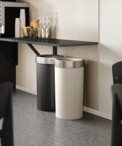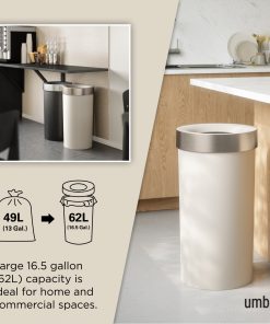 Style meets function with this large, easy-to-use garbage can that looks great! With brushed metal accents, a hassle-free open-top lid, and integrated neck ring, Vento keeps your garbage bag out of sight. This stylish trash can is constructed of durable polypropylene so It’s sturdy and stable which means you do not have to worry about it toppling over. At the same time, It’s easy to maintain – just wipe it clean with a damp cloth. Vento is large enough that you do not have to constantly change the bag but small enough to fit in almost any space in your home. Vento is especially useful as a kitchen trash can, but can be used anywhere in your home, or even in a commercial space! Vento measures 14.6 x 14.6 x 27″ (55 x 55 x 68.5 cm) and has a 16.5 gallon (62L) capacity. It works with the most popular 13-gallon (49L) (bag will hang inside the can) or 30-gallon (113.5L) garbage bags, including draw-sting and flap-tie bags.