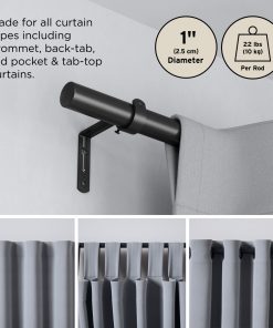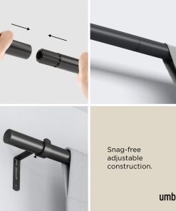 Both modern and versatile, Zen Curtain Rod features metal cylindrical finials, adding a modern and sophisticated touch to your drapery. Easy to install and assemble, Zen fits a wide range of windows and has a 1″ (2.5cm) diameter rod. This curtain rod is made with an eco-friendlier finish. It produces 85% less water and solid waste than traditional electroplating finishes. To support the full 22 lb (10 kg) weight capacity, installation of the included center support bracket is required.